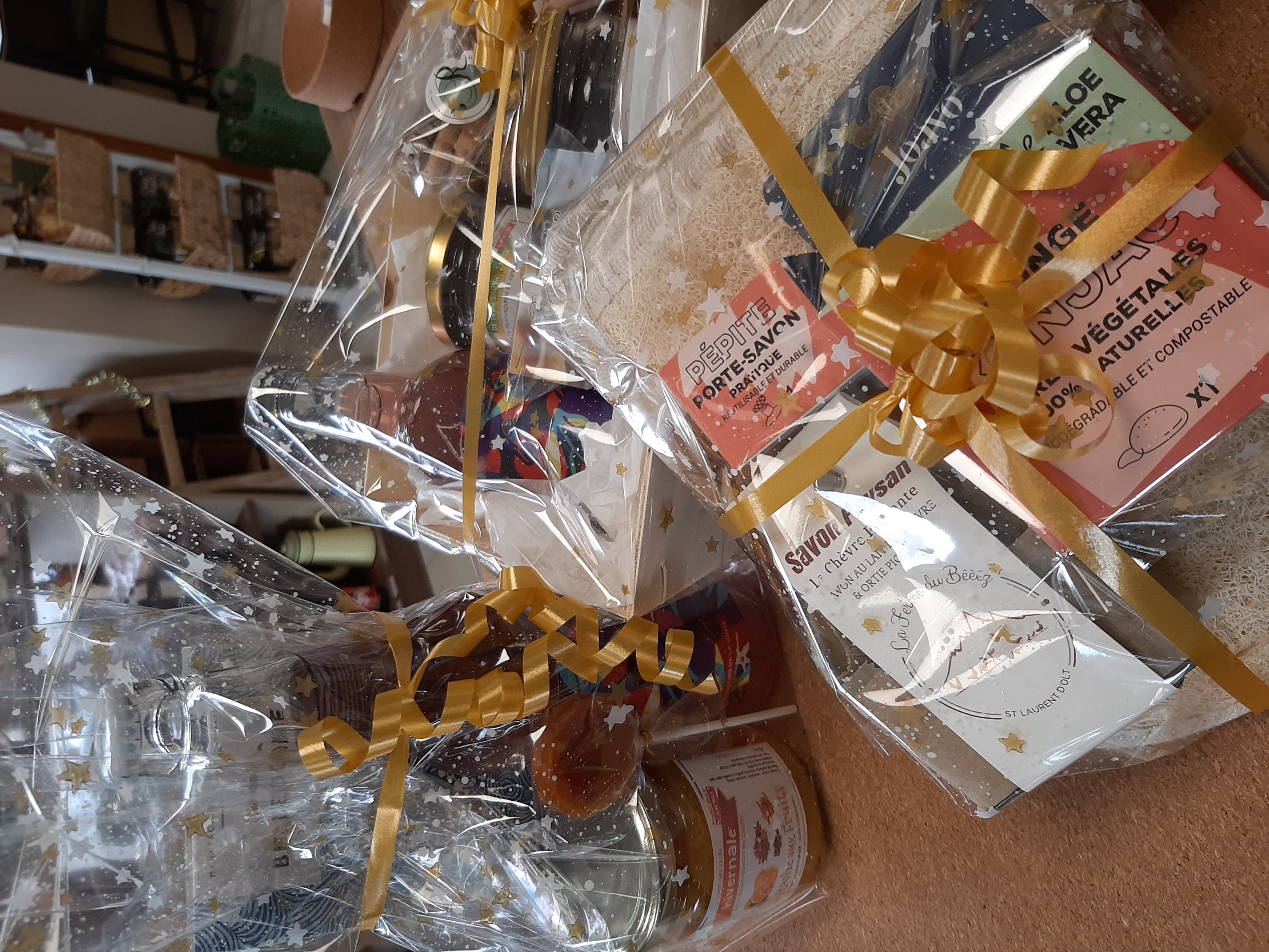 + un grand merci pour votre soutien, votre nom sera inscrit sur le mur des bienfaiteurs ! + une remise de 10 % sur votre prochain passage en caisse + un beau panier garni des coups de cœur de l’épicière