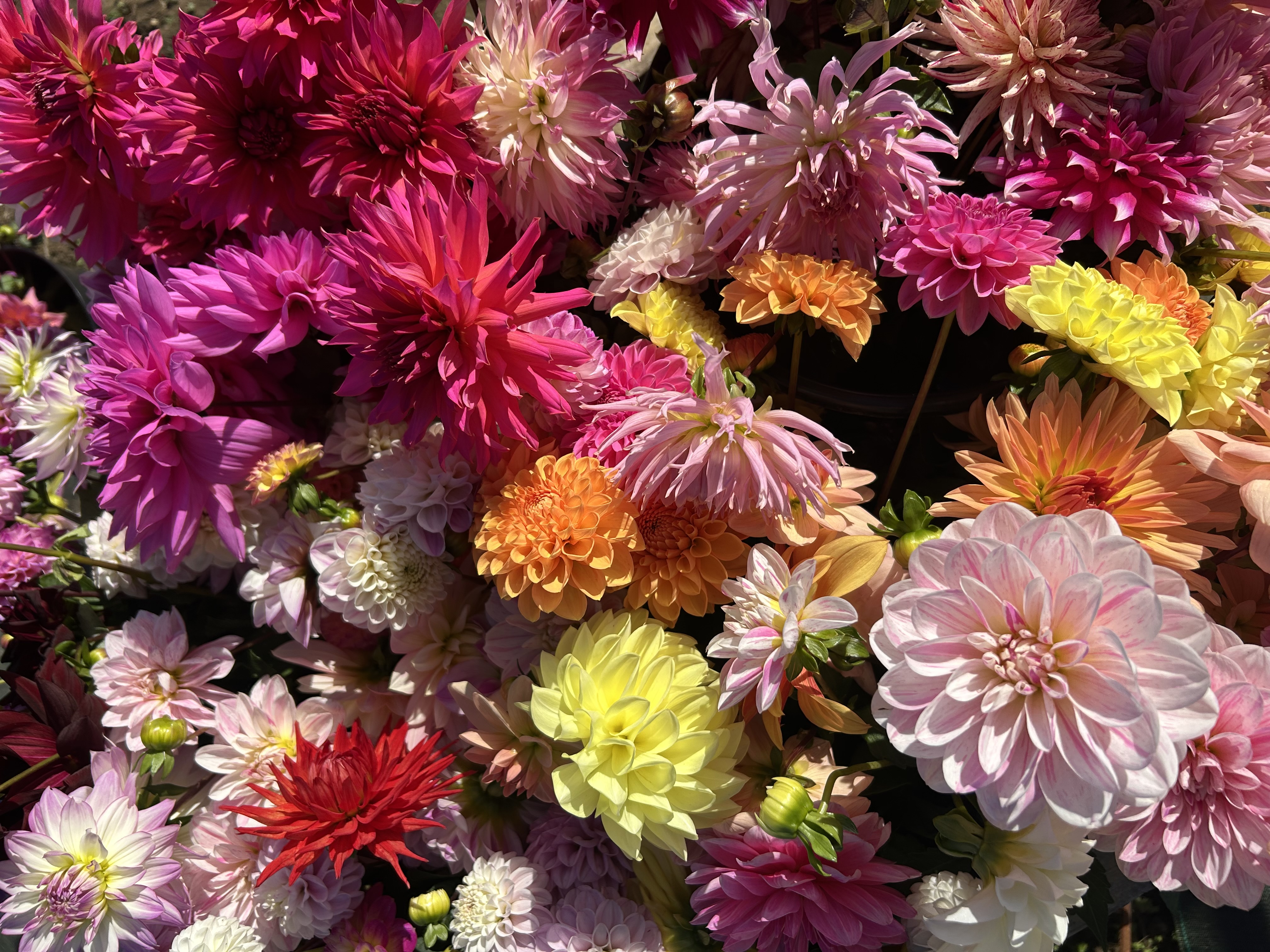Voici quelques-unes des variétés que nous cultivons : tulipes, anémones, renoncules, narcisses, jacinthes, zinnias, dahlias, cosmos, mufliers, delphiniums, tournesols…