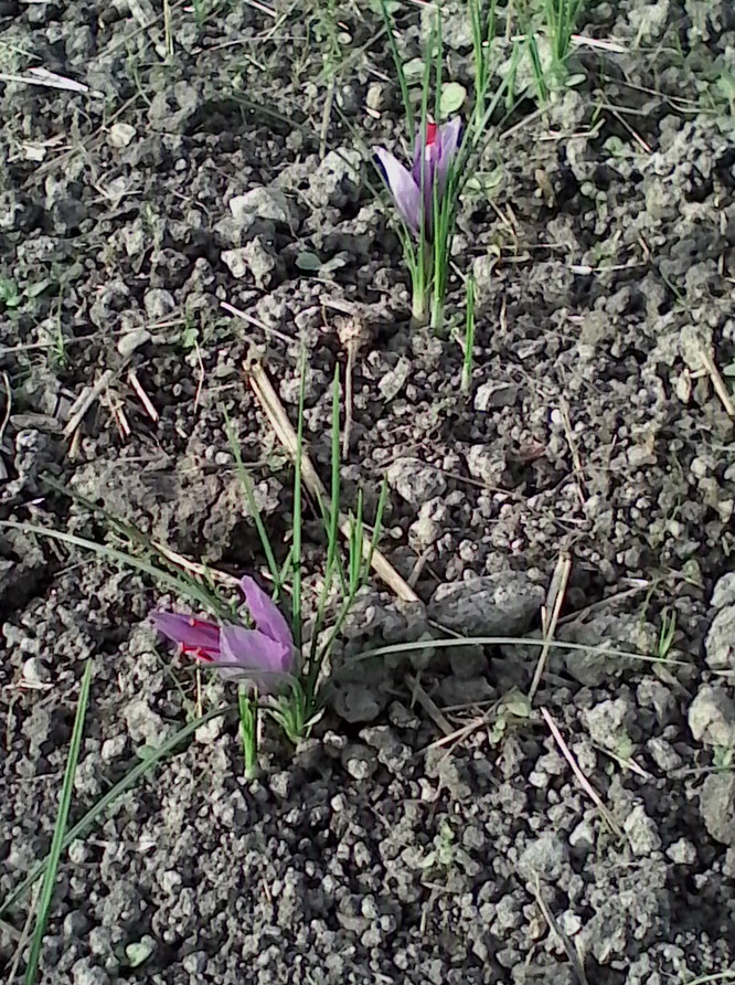 De plus, il s'avère que le terrain a une très bonne exposition, calcaire et drainant, tout ce dont le safran (crocus sativus) a besoin. Oui, le safran ! Ancien cuisinier, je souhaite allier l'apiculture et le safran, pour un miel d'exception et respectueux des abeilles, riche en goût et qualité.