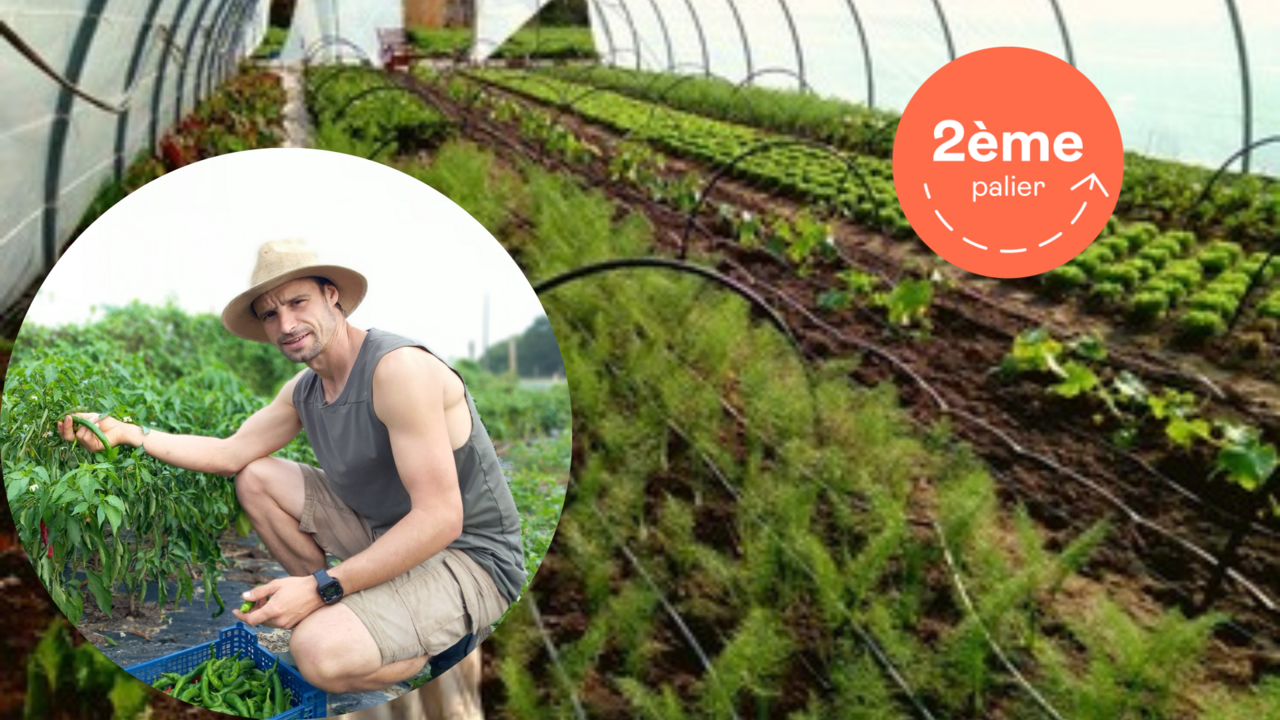 Installé en janvier 2022 en maraîchage plein champ sur 3 000 m2, je produis mes propres plants avec des semences paysannes que je compte multiplier. Mes techniques de culture se font sans travail du sol, sans traitement ni engrais chimique.