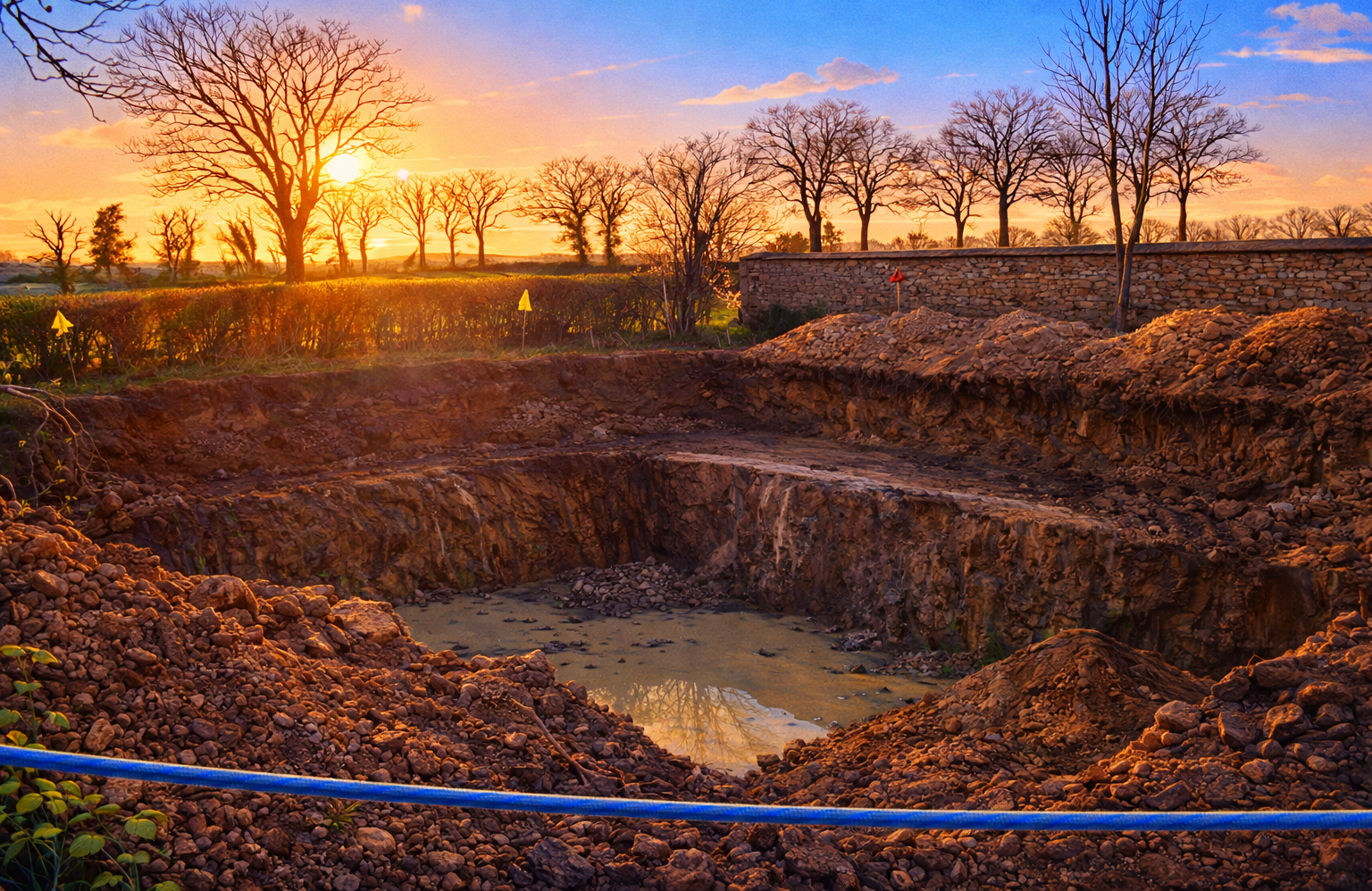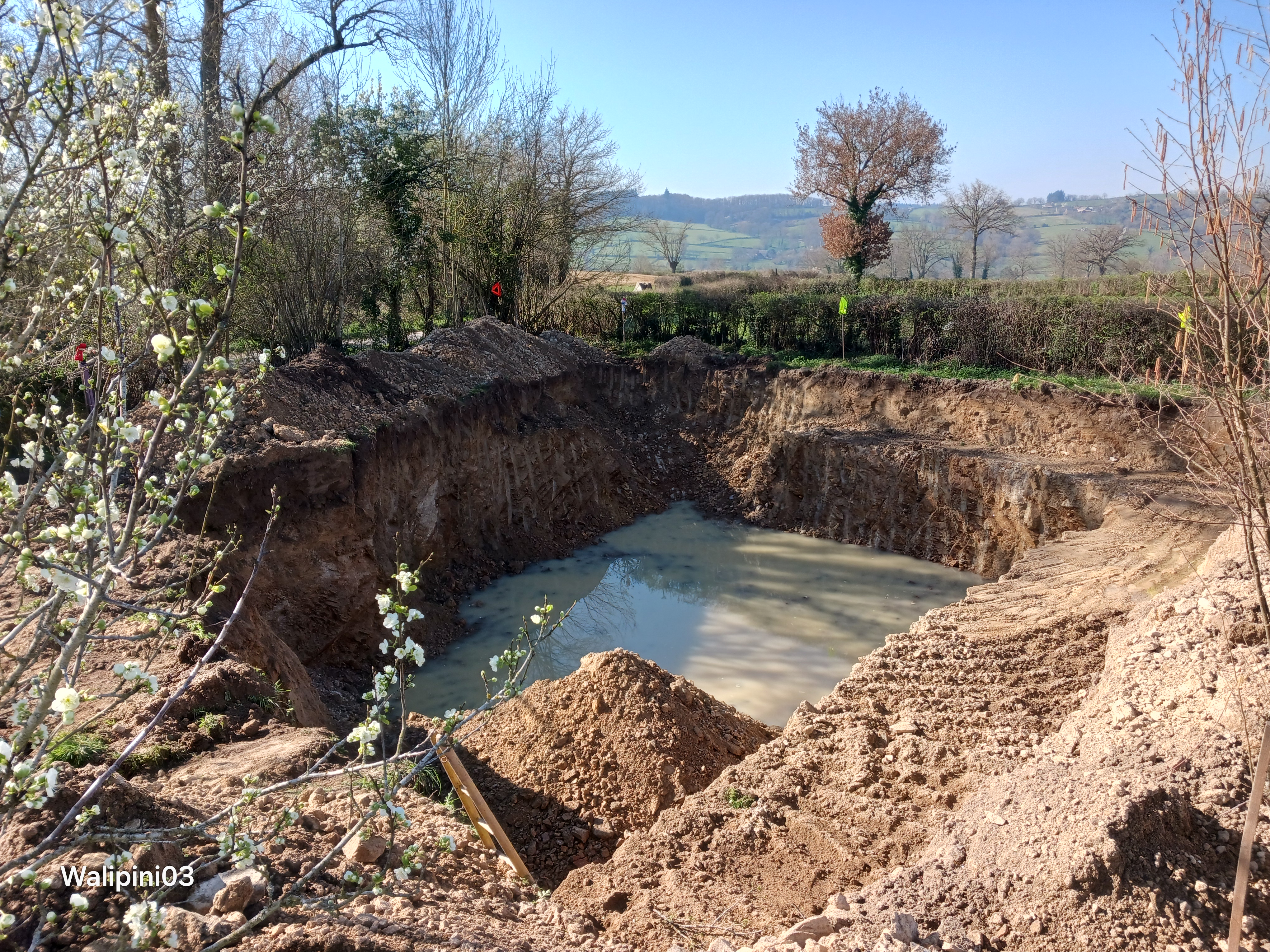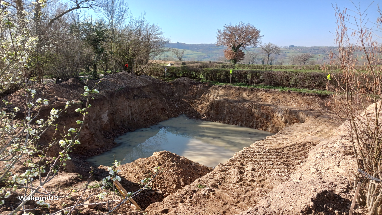 - L'excavation a démarré. Un voisin avait besoin de terre pour son terrassement : la mienne est partie chez lui. Belle synergie rurale !