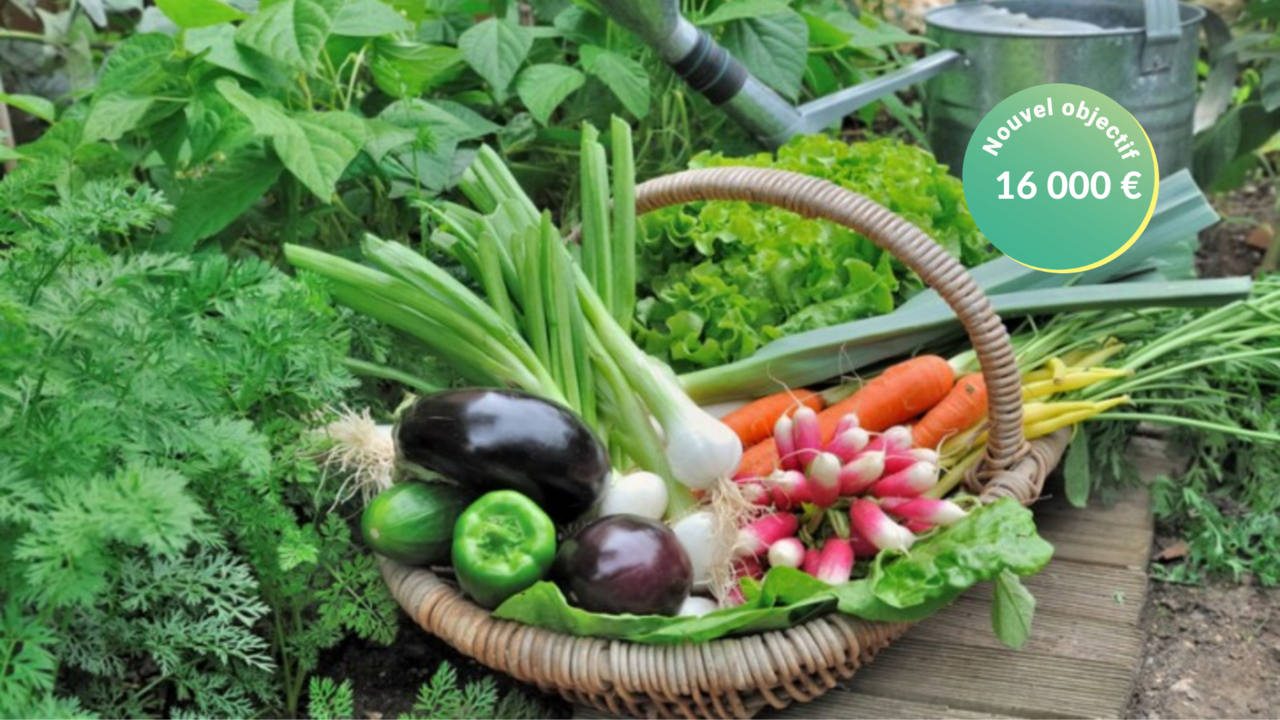 Un grand MERCI ! + Votre nom sur le mur des contributeurs + Un panier moyen de PRODUITS BIO DE NOTRE FERME (contenu selon saison et disponibilité) : légumes, petits fruits, lait, yaourts, œufs, viande, pain… + Visite de la ferme