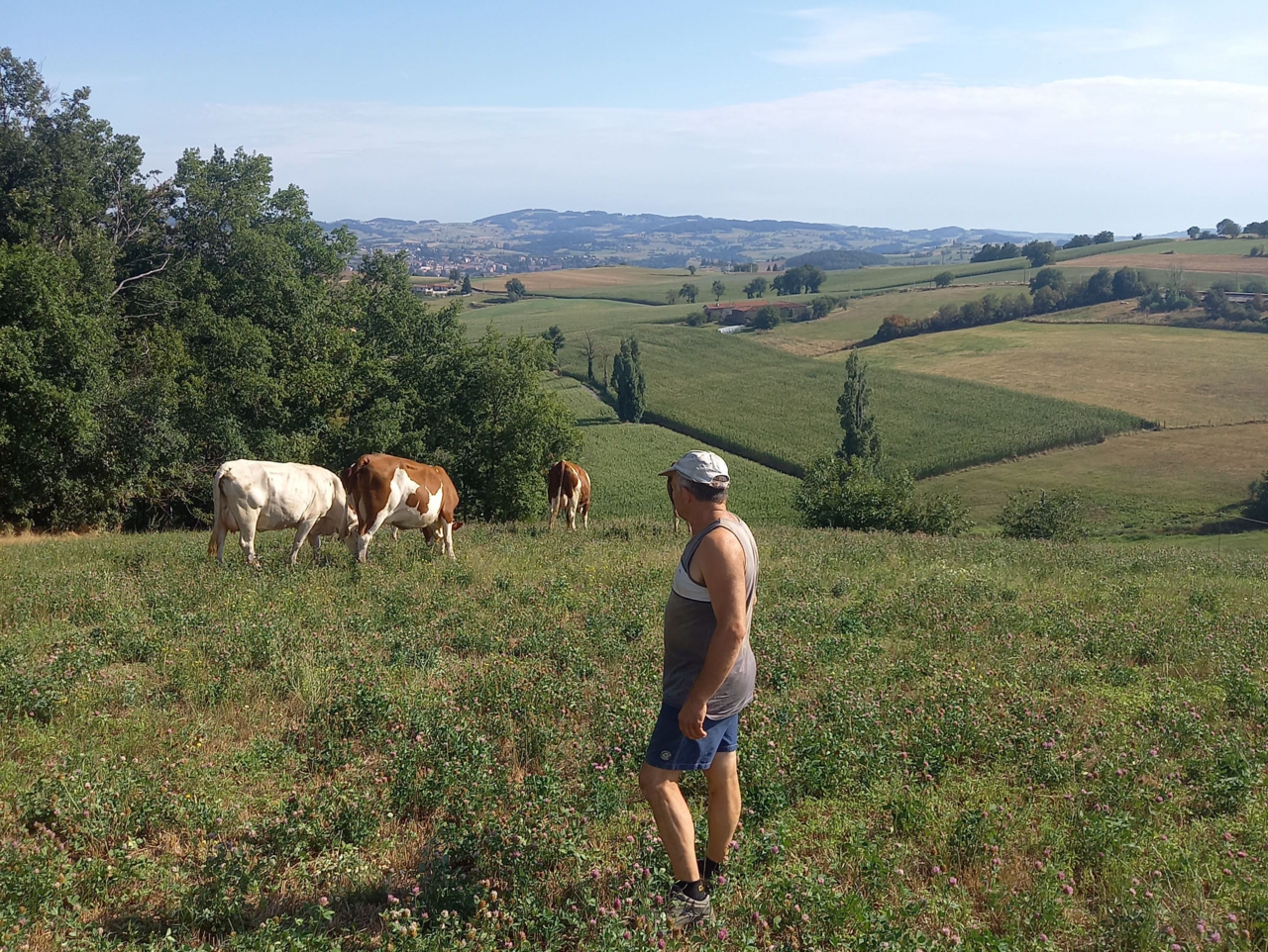 Je suis Eric Vernay, je me suis installé en 2005, sur l’exploitation familiale depuis 4 générations, l’exploitation produit du lait depuis toutes ces années. J’ai 40 vaches Montbéliardes, elles produisent 270 000 Litres par an.