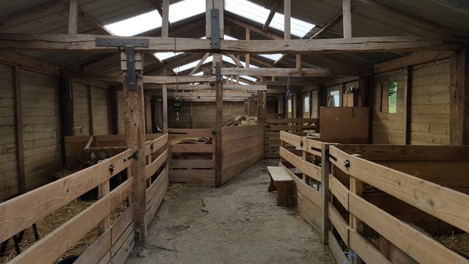 Ma ferme est composée d'un laboratoire de transformation sous forme de module (style bungalow), dans les normes pour la fabrication du fromage, d'une salle de traite équipée d'un quai de cinq places avec cornadis en bois pour plus de confort pour la traite, d'un abri pour le stockage du fourrage (foin, paille) et d'une cave pour les granulés pouvant accueillir deux tonnes.