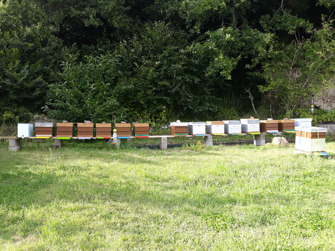 En ce qui concerne la météo, elle n'a pas toujours été conciliente. Les essaims se sont développés un peu plus doucement et n'étaient donc pas opérationnels pour la miellé de chataigniers. Cependant, certaines colonies étant plus développées que d'autres, la récolte d'été a été bonne pour une première année : 100 kg de miel, ce qui est plutôt bien pour une première année !