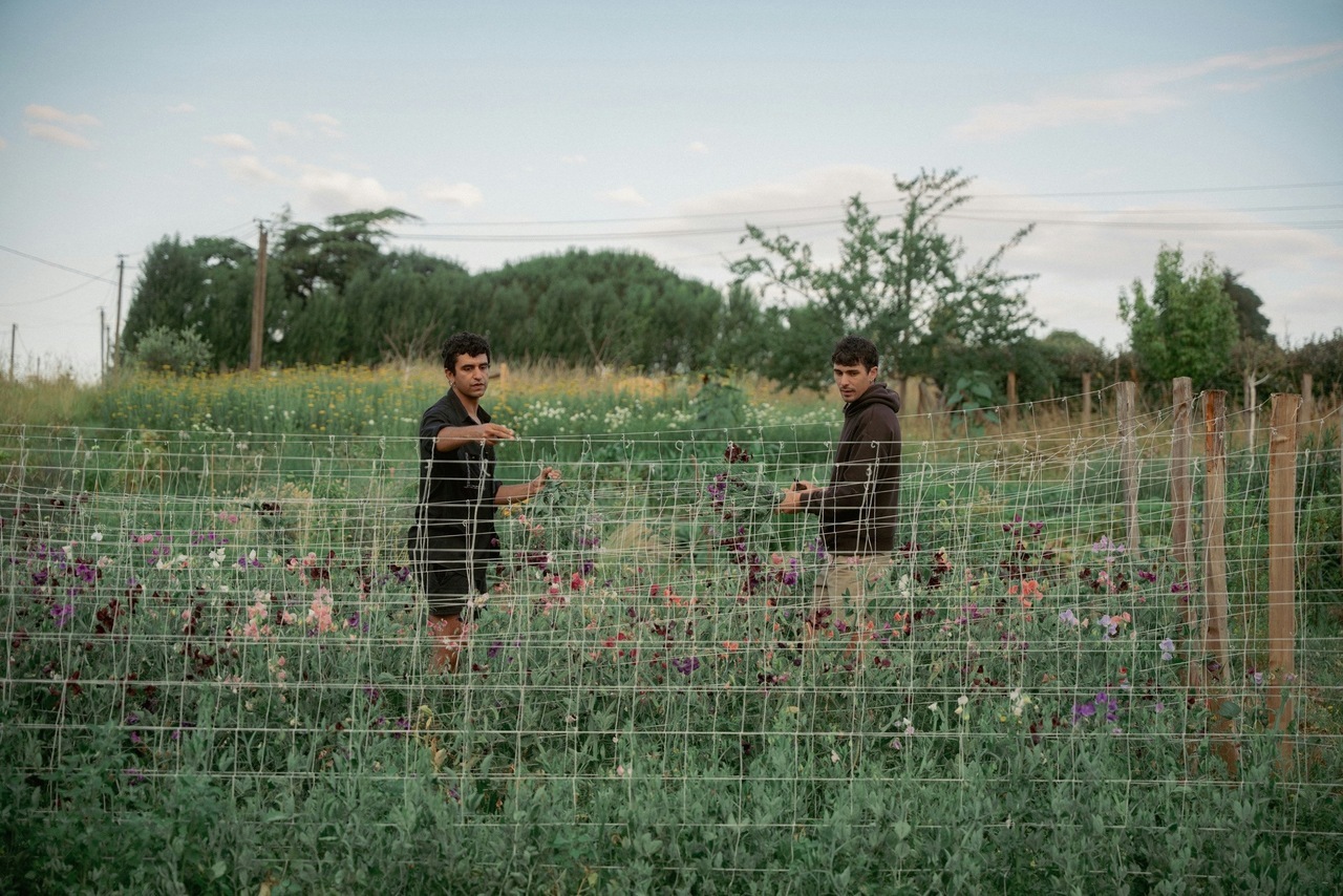 Nous sommes Sohrâb et Kévin, fondateurs de la ferme florale Les Fleurs de Roussillon, à Ozillac, près de Jonzac.