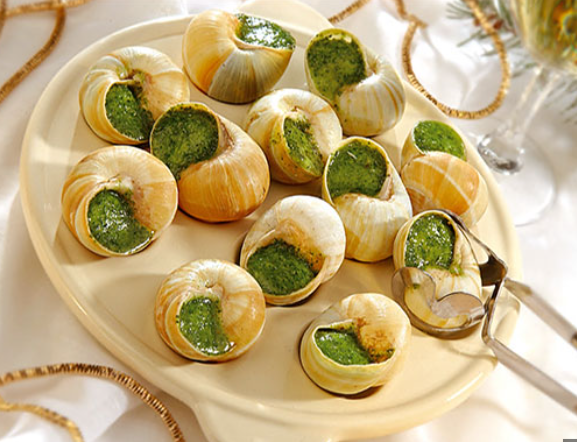 Dégustation de différents escargots cuisinés (coquille, croquille goûts variés)