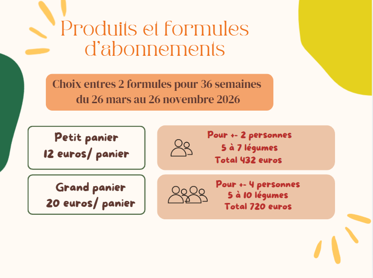 Pour 100 euros, vous repartirez avec un panier de légumes de saison. + Un verre offert sur le champ + Une bouteille de jus de pomme + Un sachet de graines + Votre nom gravé sur le panneau des donateurs Un immense MERCI!