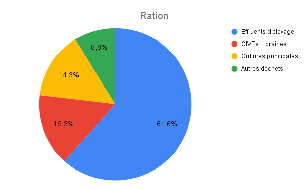 Les intrants considérés dans la ration du projet représentent environ 8 340 tonnes de matières organiques par an :